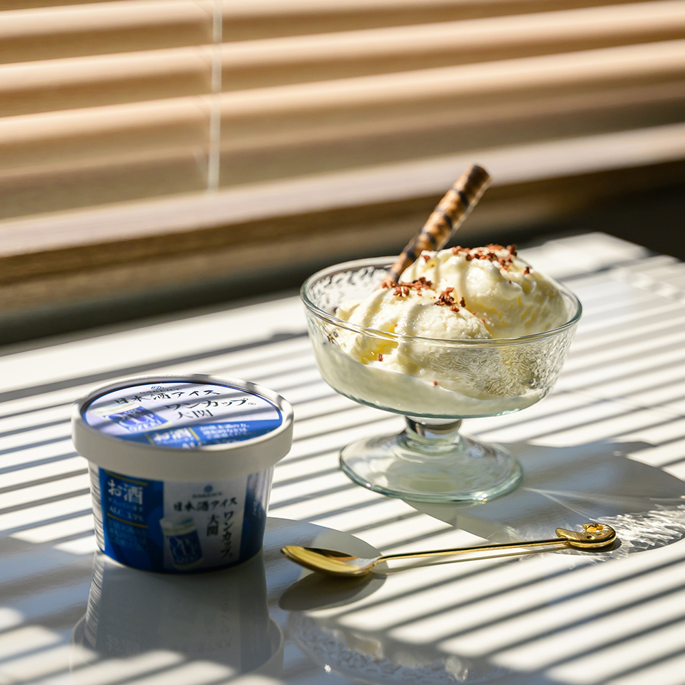 「ワンカップ大関」を贅沢に使用し、アイスでもアルコール度数約3.5%のしっかりした味わいを楽しめます。