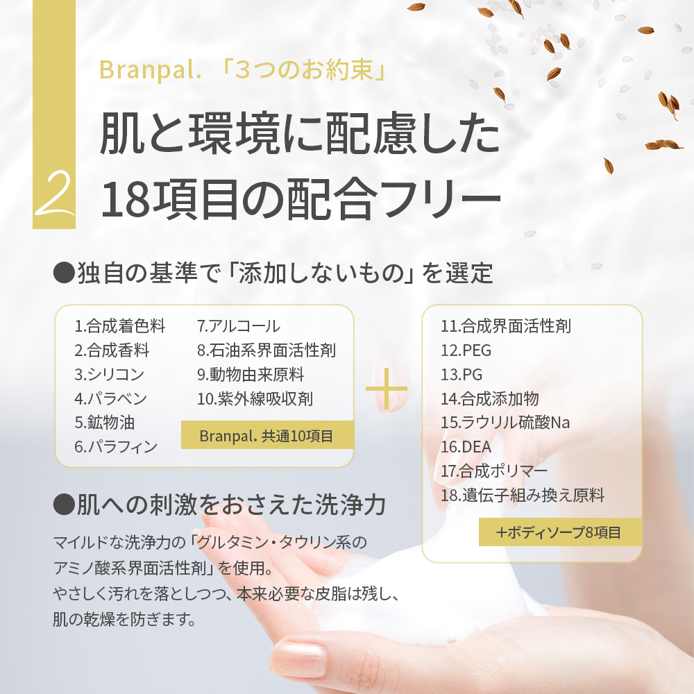 【成分】 水、DPG、コカミドプロピルベタイン、ココイルグルタミン酸K、グリセリン、ココイルメチルタウリンNa、ジオレイン酸PEG-120メチルグルコース、ラウロアンホ酢酸Na、コカミドメチルMEA、コメ発酵液、ラウリルベタイン、ココイルグルタミン酸Na、酒粕エキス、コメ胚芽油、コメヌカエキス、クエン酸、安息香酸Na、フェノキシエタノール、キシリトール、グルコン酸Na、トコフェロール、BG、香料